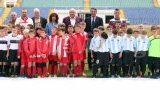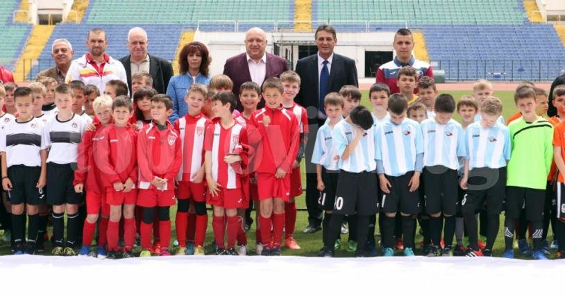 Малките футболисти изслушаха с ръка на сърцето българския химн и развяха огромния трибагреник, поставен пред тях. Състезанието откри лично министърът на младежта и спорта Красен Кралев.